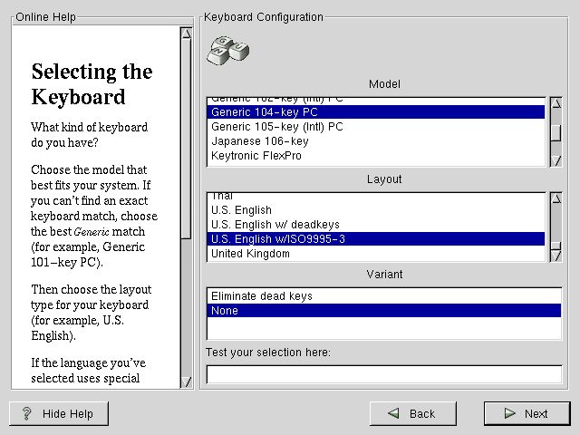 Next, choose the correct layout type for your keyboard (for example, U.S. English).
